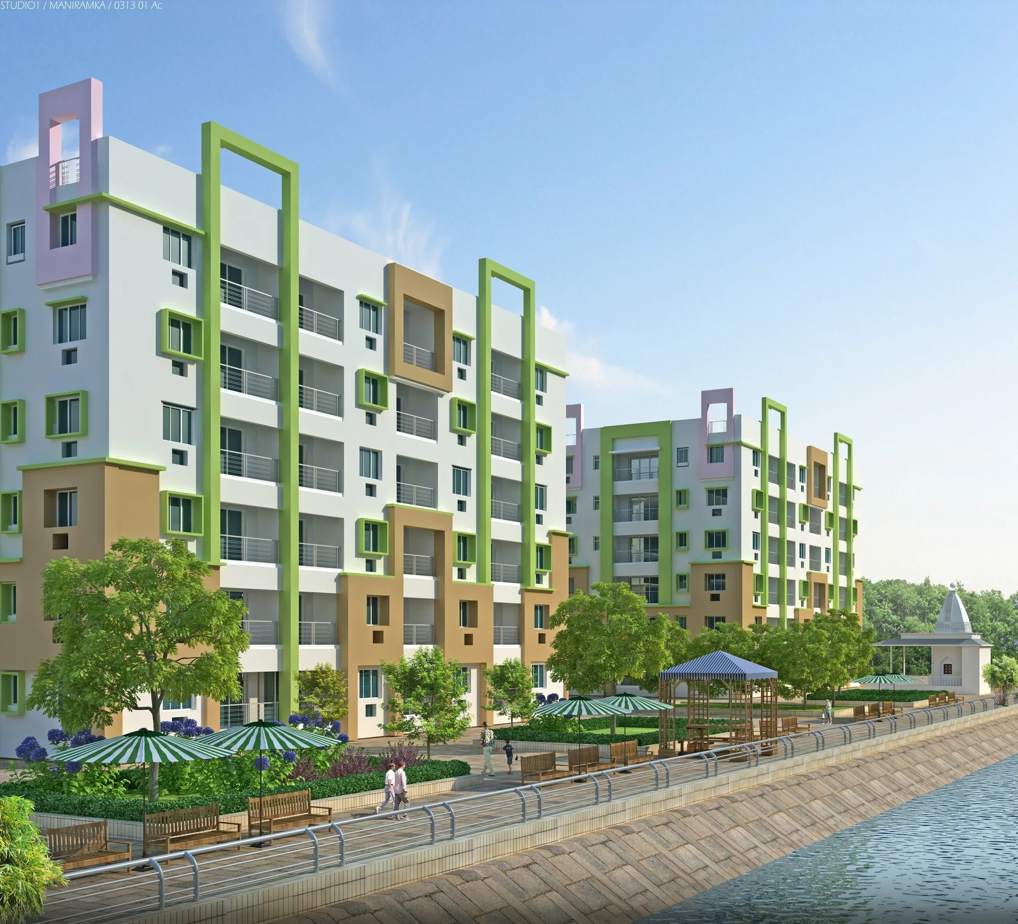 Given the riverfront setting, the design also incorporates measures to prevent soil erosion, with buildings thoughtfully set back and existing trees preserved, ensuring environmental balance and long-term sustainability.