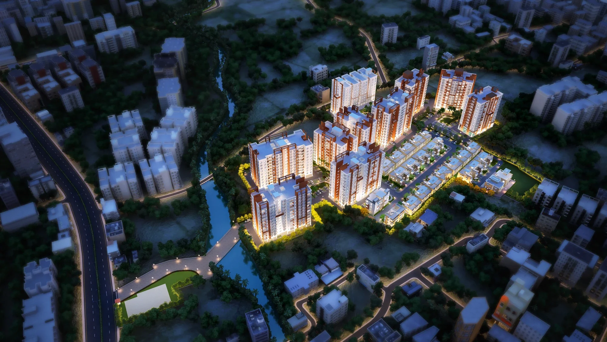 Shraachi Greens in Tatanagar offers a distinctive residential environment by integrating high-rise living with low-rise family homes. The development comprises ten multi-storey towers along with private bungalows, connected row houses, and spacious townhouses—catering to diverse family needs and lifestyle preferences. The towers define the denser zones, offering modern apartments with far-reaching views, while the bungalows and row houses create more intimate, ground-level neighborhoods with a strong sense of community.