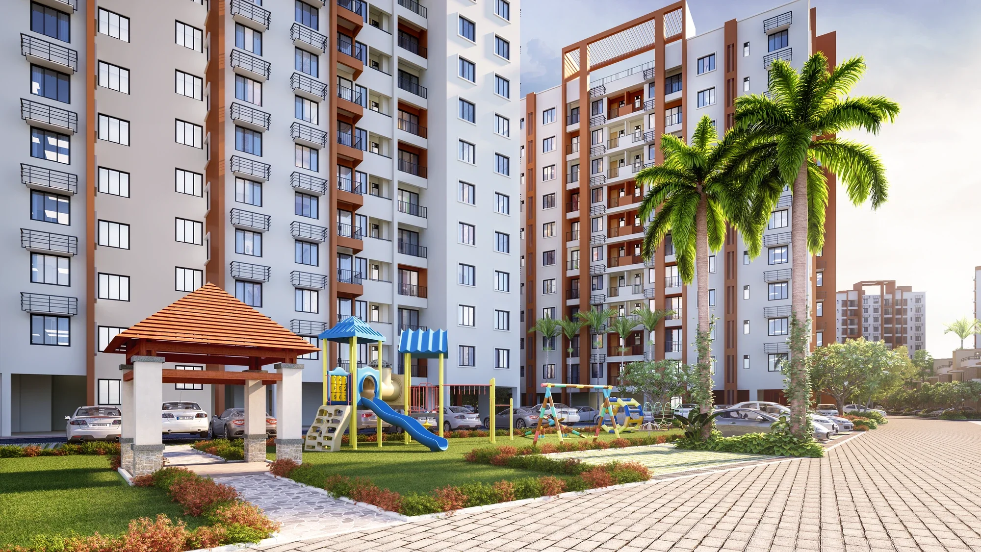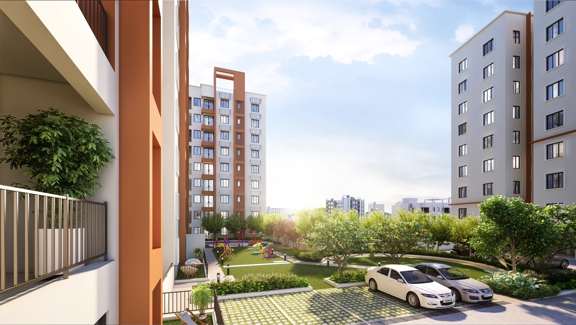 All homes are oriented to capture scenic vistas of the Dalma Hills from balconies and terraces. Through the thoughtful interplay of vertical and horizontal typologies, Shraachi Greens establishes a cohesive and balanced residential fabric that harmonizes density, comfort, and landscape.