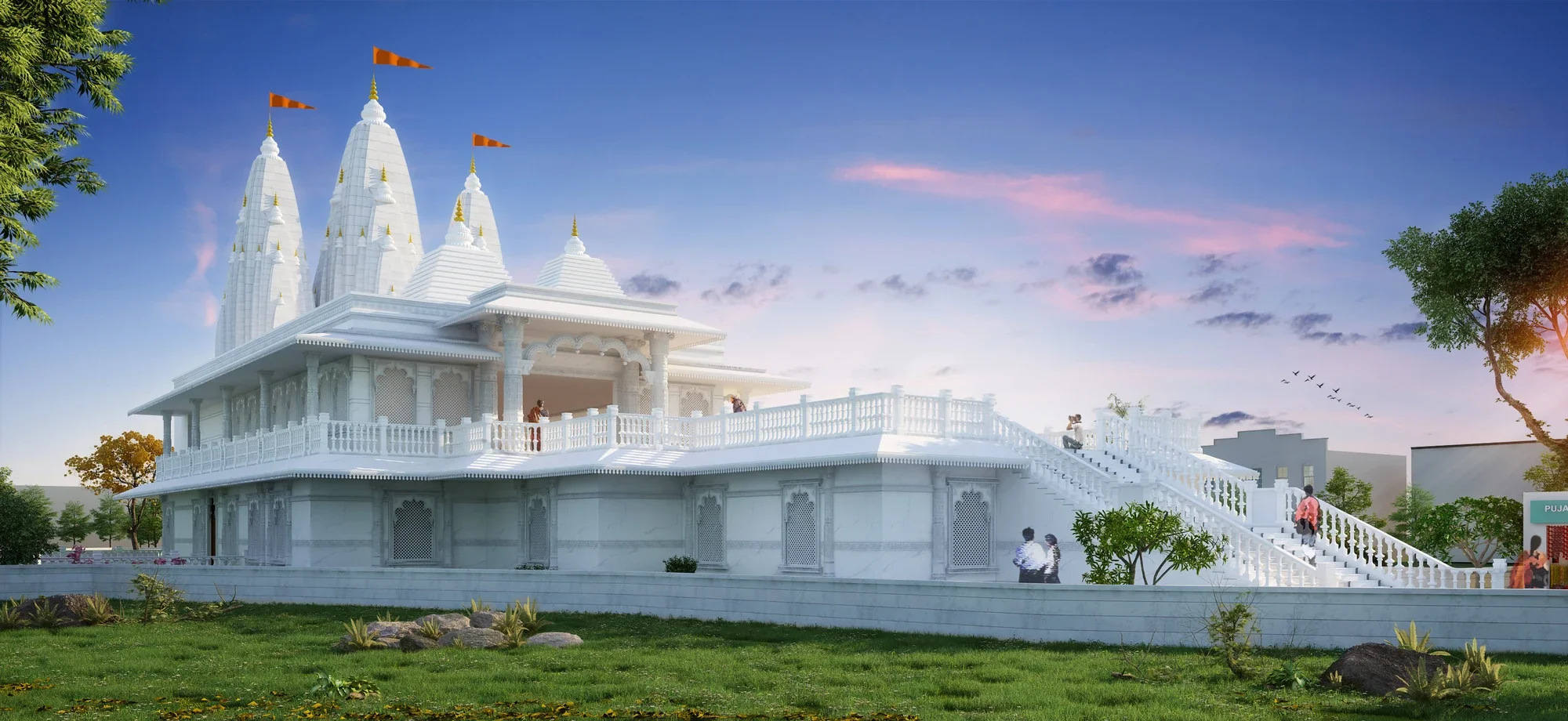 Shyam Mandir in Raniganj is a grand temple complex dedicated to Shree Shyam Baba. The design follows traditional North Indian temple architecture, featuring towering shikharas, intricately detailed facades, and wide ceremonial steps leading into the sanctum. White stone cladding enhances its spiritual aura, while the spacious forecourt and circulation areas accommodate large gatherings of devotees. Completed as a landmark for the region, the temple blends devotional symbolism with enduring architectural expression.
