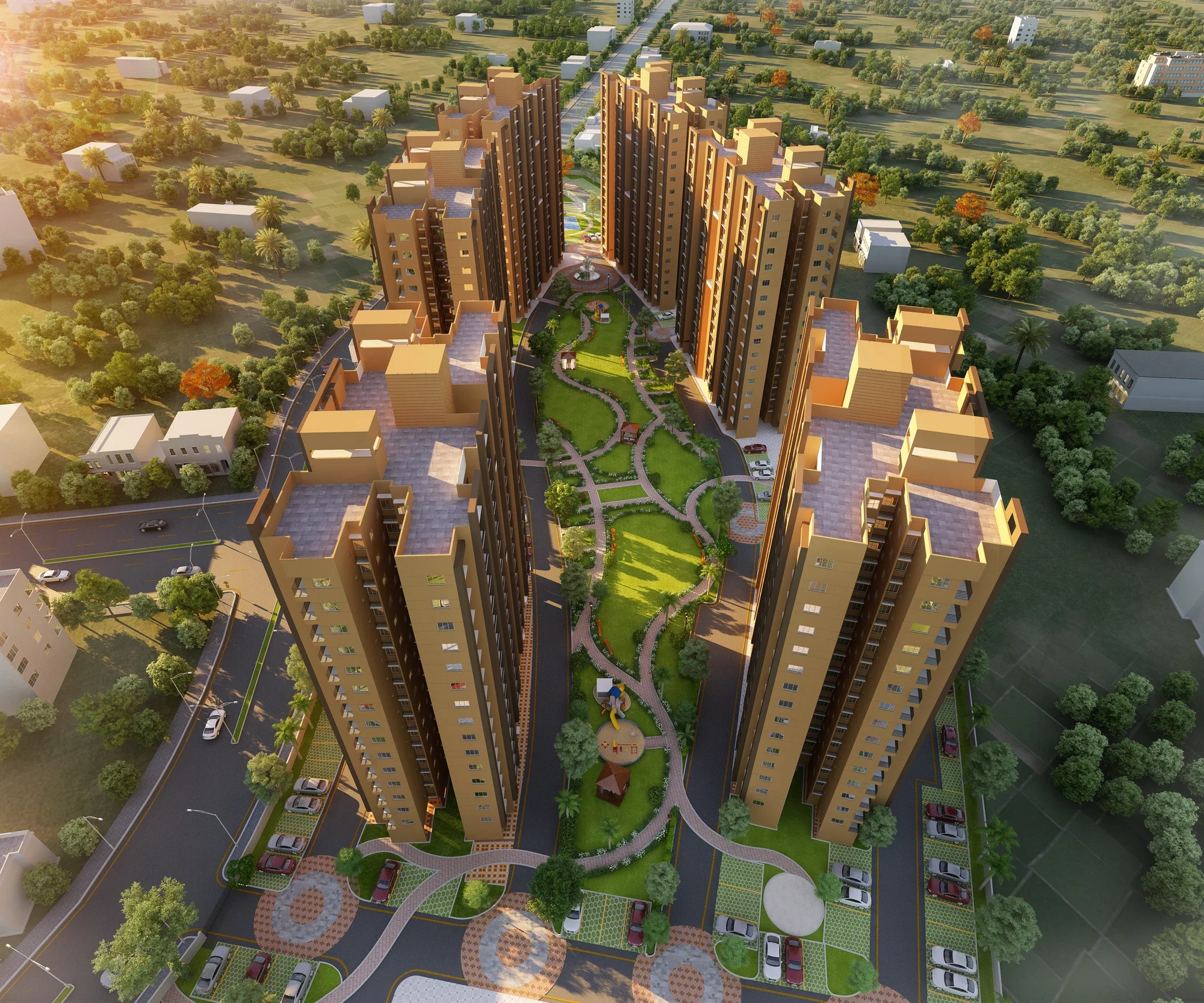 Located in Bardhaman, about 100 km from Kolkata, Solis is an MIG housing development within the 250-acre Renaissance Township. It comprises seven 16-storey towers arranged parallel to each other around a large landscaped central space, ensuring every apartment receives ample light, ventilation, and views. A 9 m outer ring road provides fire access, while an inner loop supports residential movement, complemented by a 140-car parking block.